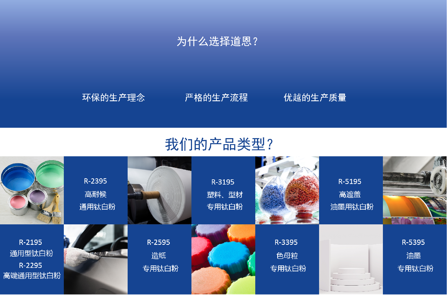具有较好的遮盖力,具有广泛的产品适用性,主要应用于涂料、型材、造纸等领域; R-2195 has good hiding power and generality, mainly used in coating, profile, laminated paper and other fields. |