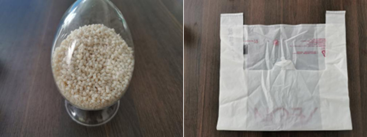 BF1113产品是一款淀粉填充聚乙烯改性母料,它是以植物来源的淀粉替代石化资源的聚乙烯,其具有聚乙烯柔韧表面光滑卫生的特性,而且淀粉的添加又赋予产品部分生物降解的特性。该产品凭借其高淀粉填充以及优异的加工性能和物理性能,适用于传统聚乙烯产品的添加,最终产品可完全代替传统塑料包装袋,如购物袋、手提袋、快递袋、垃圾袋、抽绳袋等。