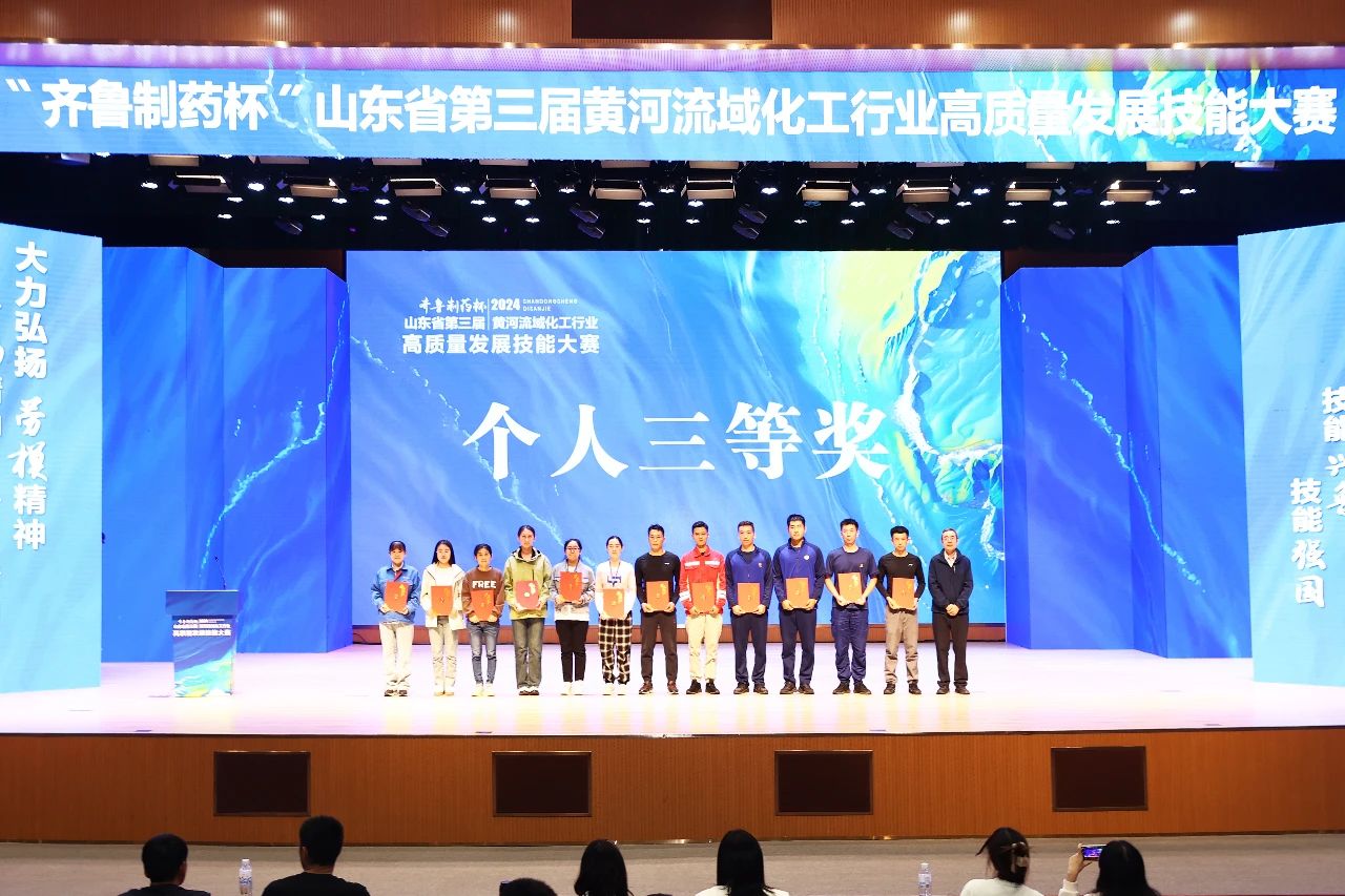 On October 18th, the "Qilu Pharmaceutical Cup" Shandong Province's 3rd Yellow River Basin Chemical Industry High-Quality Development Skills Competition concluded at the Qilu Pharmaceutical Biomedicine Industrial Park. Wang Wei, the head of the quality control department at Dawn Titanium Industry Co., Ltd, won the third prize in the chemical testing competition, showcasing the excellent skill level and spirit of Dawn's industrial workers.