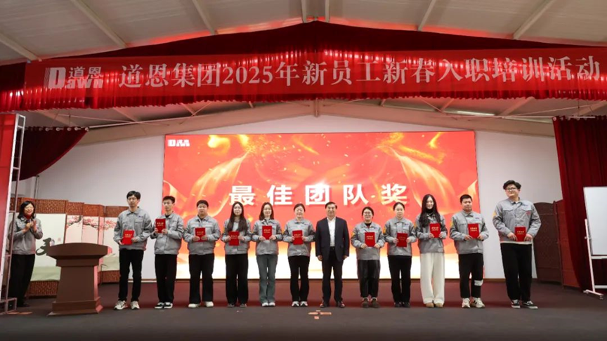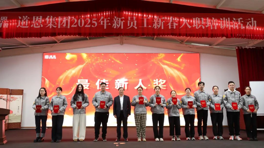 At the completion ceremony on February 14th, Qiao Fenglu, the new-employee representative, spoke with great enthusiasm. "As new employees, we should carry forward the work spirit of 'committing, striving, and going all-out', implement the work style of 'being eager, competitive, and aggressive', embrace opportunities, face challenges head-on, and create extraordinary achievements in ordinary positions." During the team-building activities, the "Peppa Pig Team" won the "Best Team Award". In the on-boarding exam, 12 new employees received the "Best Newcomer Award", and Chairman Yu Xiaoning presented honorary certificates and prizes to the employees.