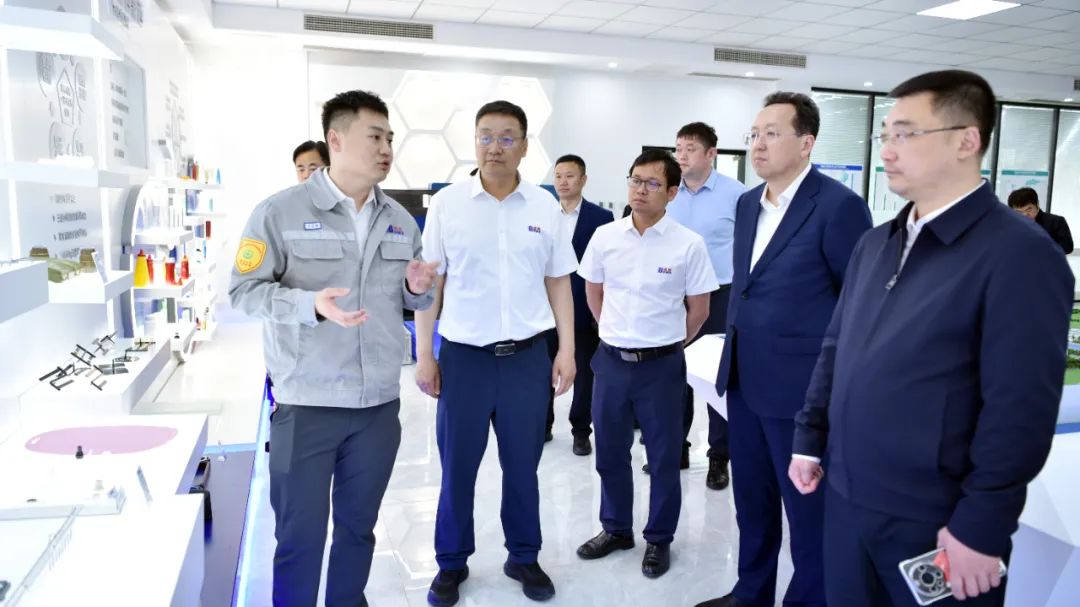 On the afternoon of May 14, Zhou Lin, Member of the Party Working Committee and Deputy Director of the Management Committee of the Shanghai Cooperation Organization (SCO) Demonstration Zone, Member of the Party Leadership Group and Deputy Mayor of Jiaozhou Municipal Government, and Commander-in-Chief of the Construction Headquarters of SCO COSMOPlat New City; and Li Yang, Vice President of Haier Smart Home and General Manager of Global Procurement, visited Dawn Group to deepen strategic cooperation and explore a path to win-win development. Yu Xiaoning, Chairman and President of Dawn Group, Vice President Song Huidong, Tian Hongchi, General Manager of Dawn Polymer, and Yu Zhengyu, Assistant to the President of Dawn Group, accompanied the visit.