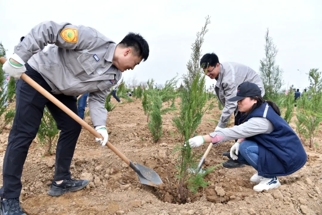 独木难成林,一人不为众。各部门单位干部员工在指定区域“大显身手”,两三人一组分工协作,扛树运苗、挥锹填土、扶苗夯土,让大家感受到了劳动的快乐,增强了团队的凝聚力。经过半上午的辛勤劳动,种下5000余棵龙柏、黑松,苗株成行,错落有致,为园区增添了新的生机与活力。