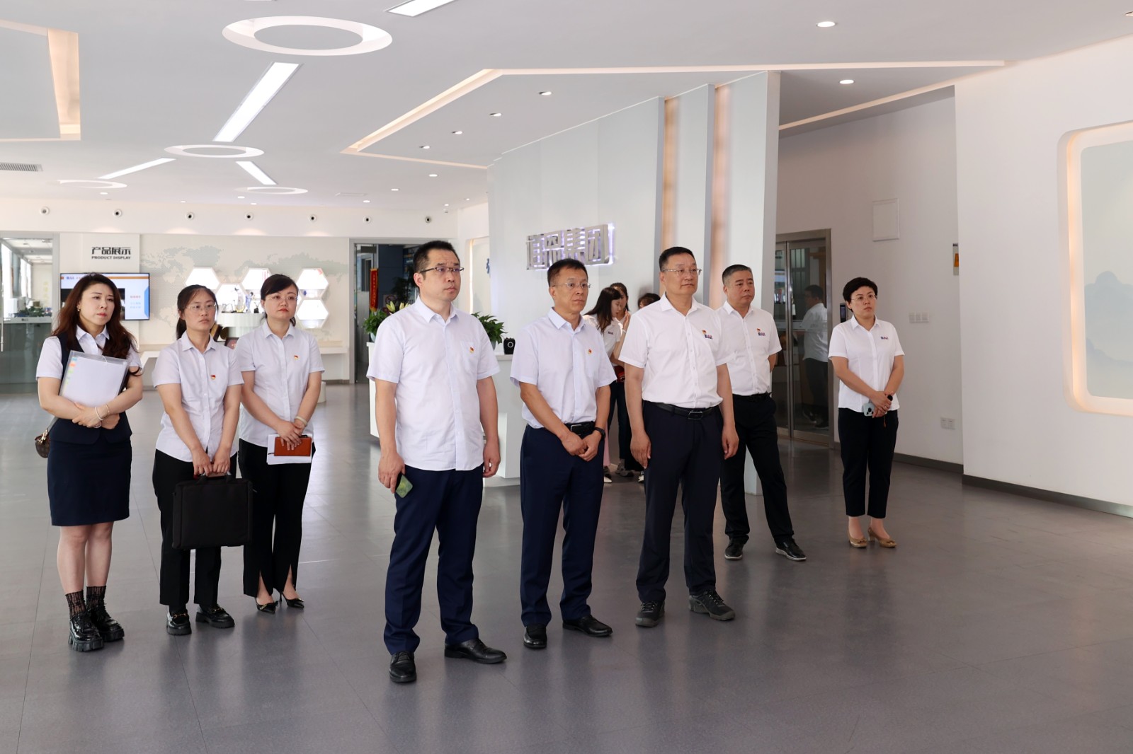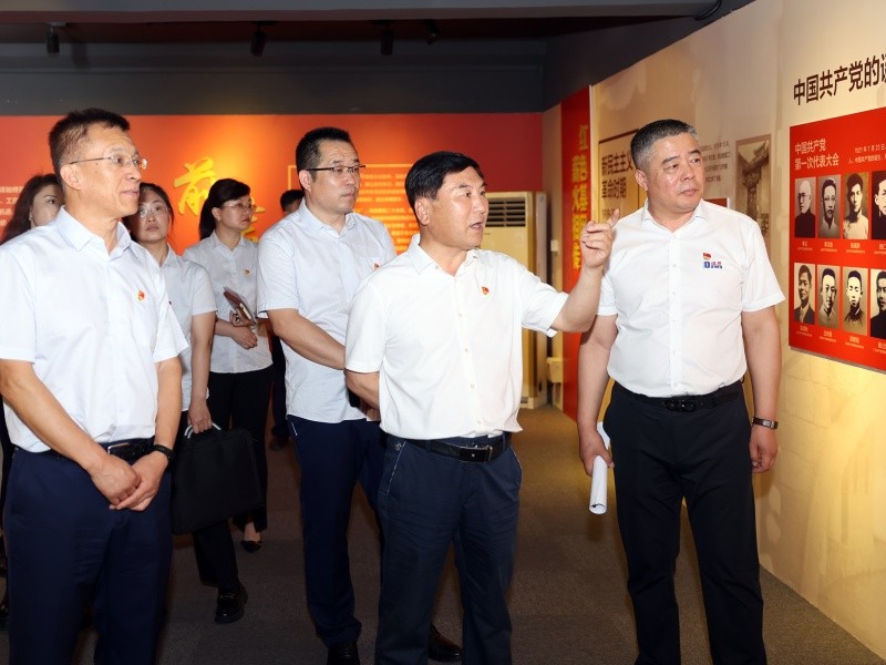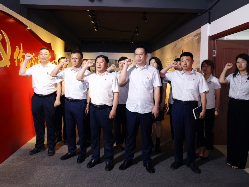 肖应东书记一行实地参观了JN体育集团总部大厅、JN体育传承红色基因教育基地,了解红色文化在JN体育的传承与发展,从红色藏品中触摸峥嵘岁月,在红色故事中汲取强大的信仰力量。在红色文化墙前,于晓宁书记带领大家重温入党誓词,进一步坚定了初心使命。