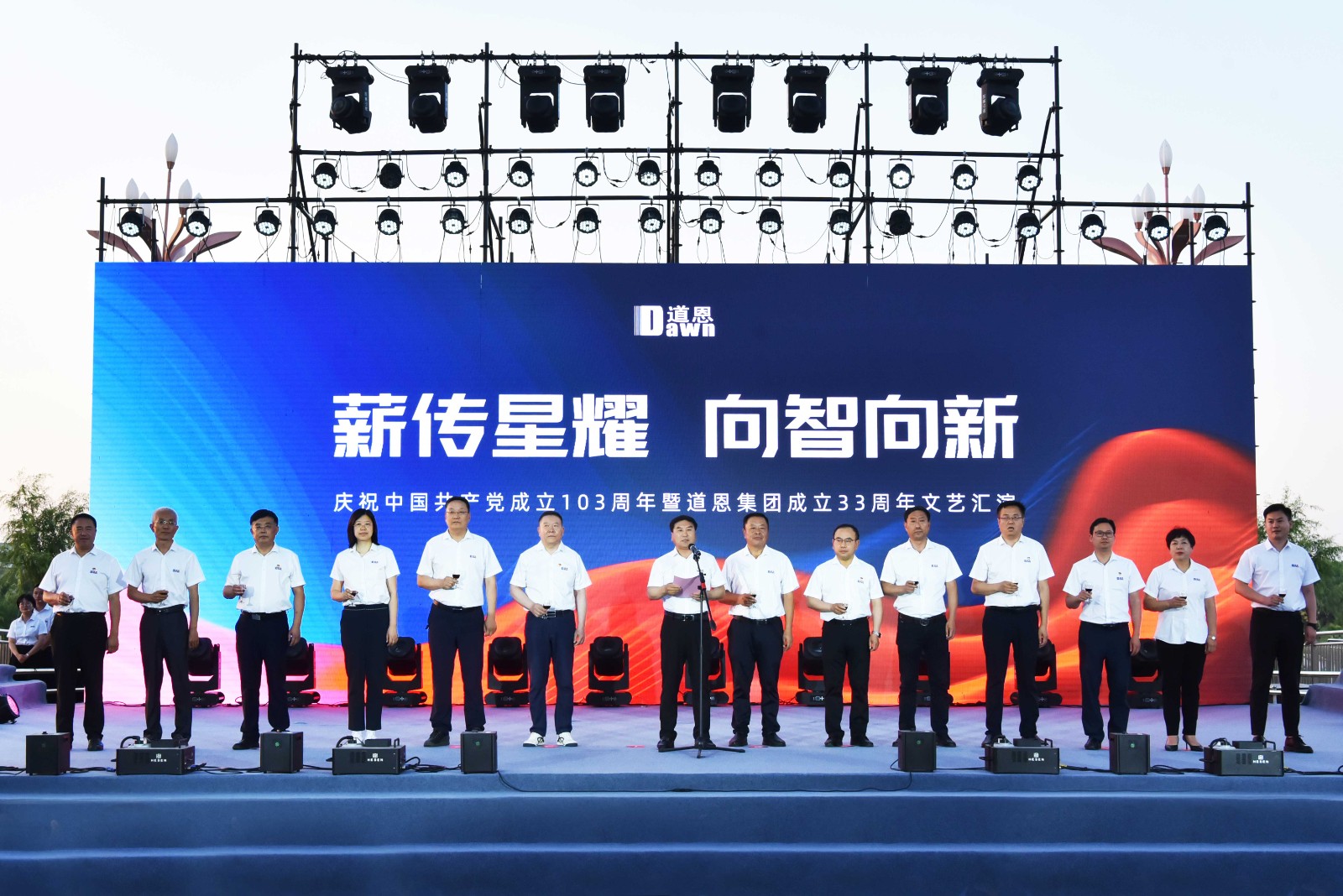 6月28日,走进龙口市JN体育新材料科技产业园,彩旗招展,一派喜庆氛围。当天晚上,JN体育人欢聚JN体育桥,隆重举行以“薪传星耀 向智向新”为主题的庆祝中国共产党成立103周年暨JN体育集团成立33周年文艺汇演。