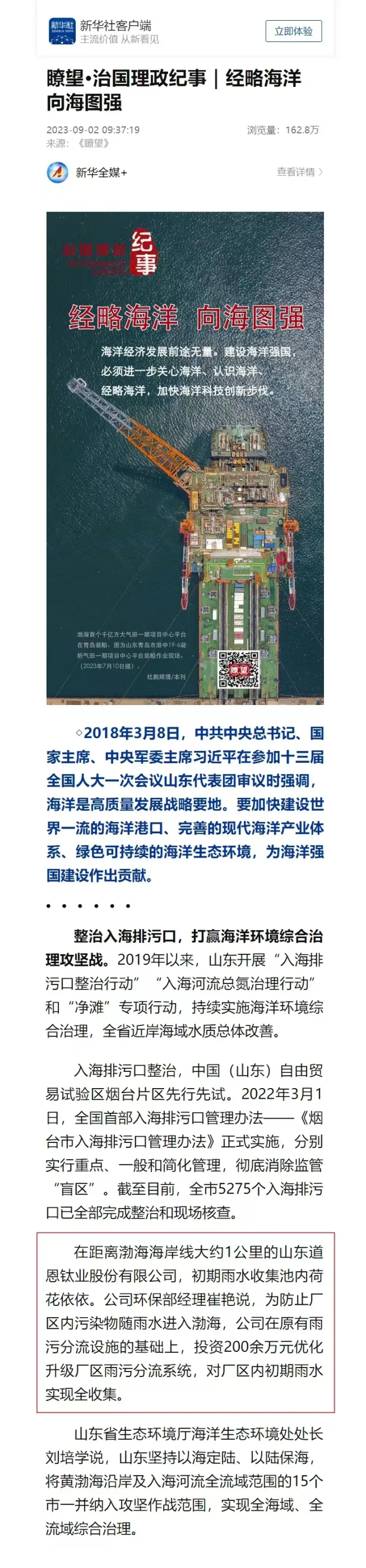 作为钛白行业首个国家级绿色工厂示范企业,JN体育钛业公司走出了一条“雨污分流+清污分流+水质改善+景观提升”新路径,成为龙口市工业企业雨污分流改造的典型案例。未来将以高度的责任感和使命感,持续强化环保设施升级改造,努力建设环境友好型企业,为保护海洋生态环境、推动海洋经济高质量发展贡献更多的力量。
