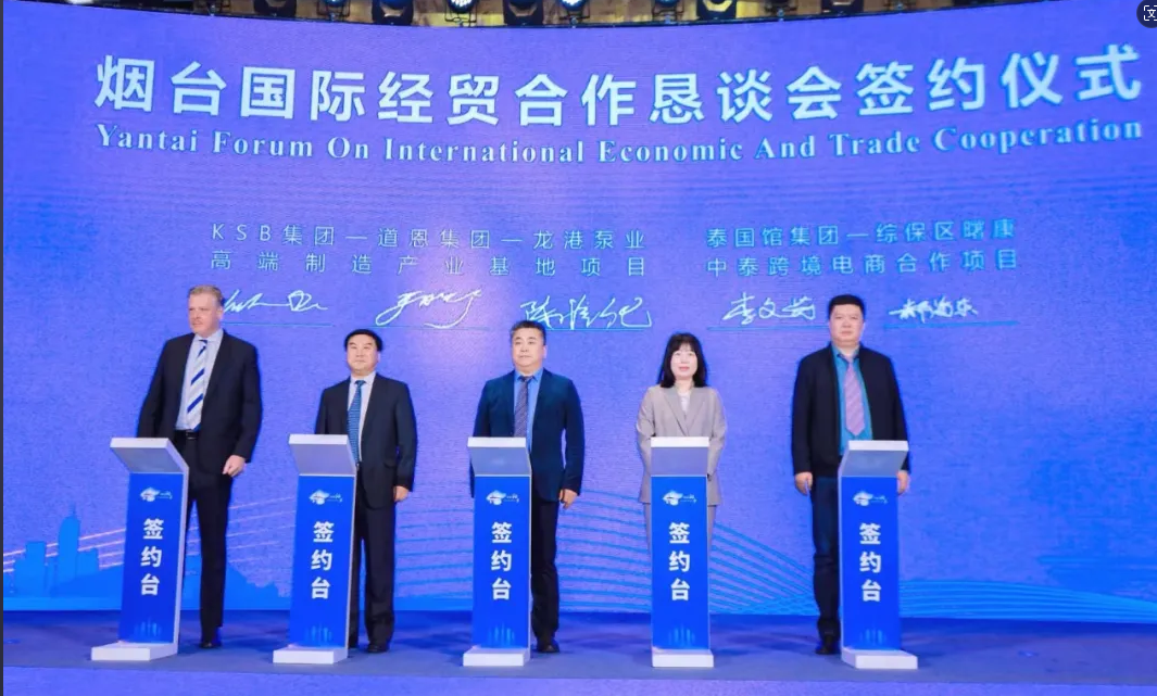 2022年11月6日,在上海举行的烟台国际经贸合作恳谈会上,JN体育集团与德国凯士比集团、龙港股份签署高端制造产业基地项目合作协议。于晓宁董事长此次上海之行,旨在进一步增进双方友谊、深化交流合作,开启携手共赢发展之旅。
