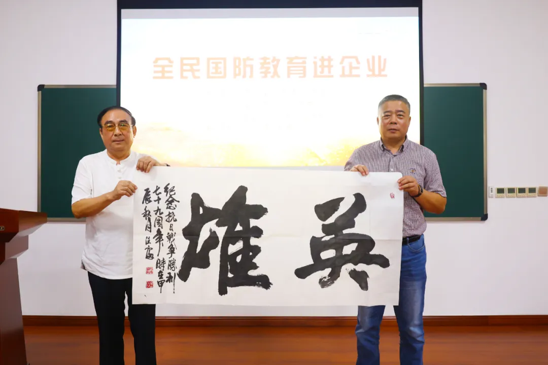 龙口市全民国防教育宣讲员、国防教育师资库成员张建鲁现场宣讲抗战精神,普及全民国防教育知识。最美退役军人杨德富现场赠送书法作品《英雄》,“JN体育一定要充分利用好这一生动教材,讲好英雄故事,传承红色基因,让革命薪火代代相传。”最后,大家共同观看了龙口市第一部抗战题材电影《战火中的雕像》,从影片中感受了抗日英雄任常伦的英勇事迹。