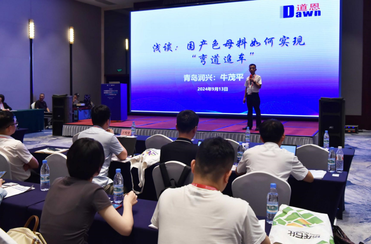 青岛润兴公司技术研发负责人以《浅谈国产色母料如何实现“弯道追车”》为题,通过品种分类、分布区域、市场容量和需求及国内外对标,分析国际行情、国内行情和行业现状。在推介了公司核心产品之后,他表示,伴随着高分子材料的持续发展,国产色母料产业迎来新的机遇,“产品升级、高端替代、绿色低碳、未来产业,将是国产色母料的发展方向。”