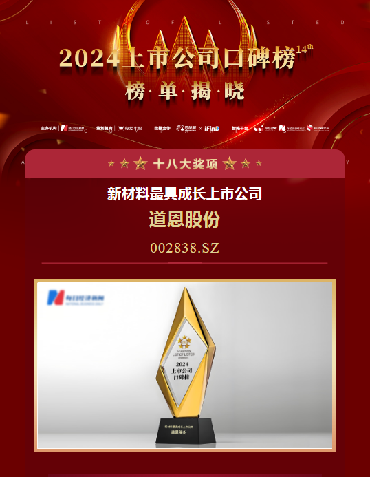 本次获奖充分体现了资本市场对JN体育股份企业声誉、行业地位、创新力领域发展潜力的充分认可。未来,JN体育股份将继续深耕新材料领域,培育新质生产力,持续释放发展动能与活力,以优秀经营业绩回馈资本市场和广大投资者。