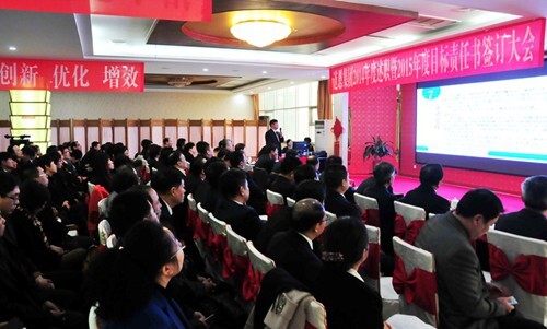 2月3日,JN体育集团2014年度述职暨2015年度目标责任书签订大会在JN体育湖畔酒店隆重召开。集团公司领导、正科长以上干部及企业文化建设工作人员参加会议。会议由集团公司副总裁王永放主持。集团公司董事长、总裁于晓宁就新年度总体工作规划做了重要讲话。