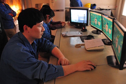 干燥班的比赛最具匠心。参赛选手进行开车操作,用水控制温度,要求进口温度550±10℃,出口温度120±5℃。而且,控制温度在范围内波动,持续5min以上,用时最短者获胜。经过激烈的角逐,操作工孙霞以15:26:75压倒性的优势,获得该组冠军。