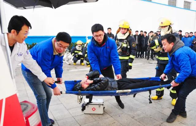 此次演练由龙口经济开发区管委统一部署,JN体育集团联合龙口市消防大队电厂路消防中队、龙矿医院急救中心共同开展。来自开发区管委、龙港集团、龙矿集团、华电龙口、海洋石油船舶中心等单位领导和企业代表60余人前来观摩。