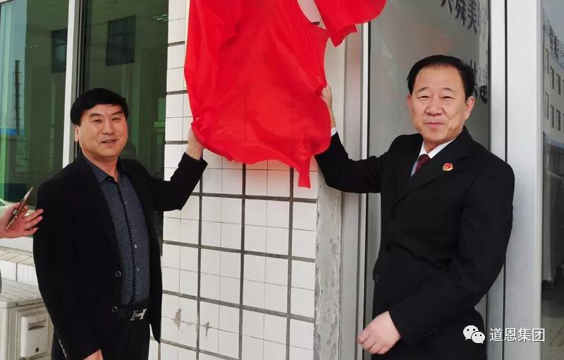龙口市人民检察院副检察长孙吉连(右)与集团公司董事长于晓宁为基地揭牌