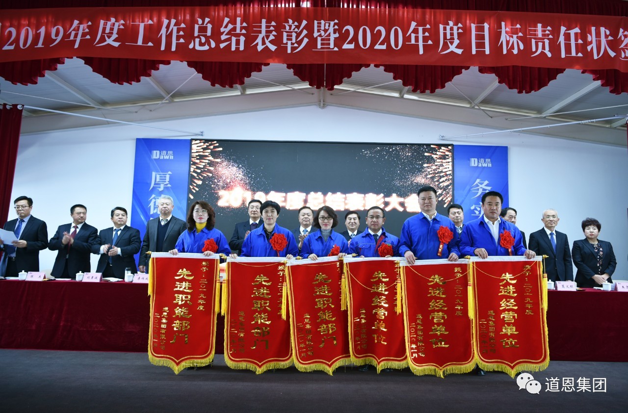在下午举行的2019年度总结表彰大会上,隆重表彰了2019年度具有突出贡献的先进集体、先进个人,于晓宁董事长、索延辉总裁等领导为获奖团体及个人颁发荣誉锦旗、证书及奖金,并作出讲话。