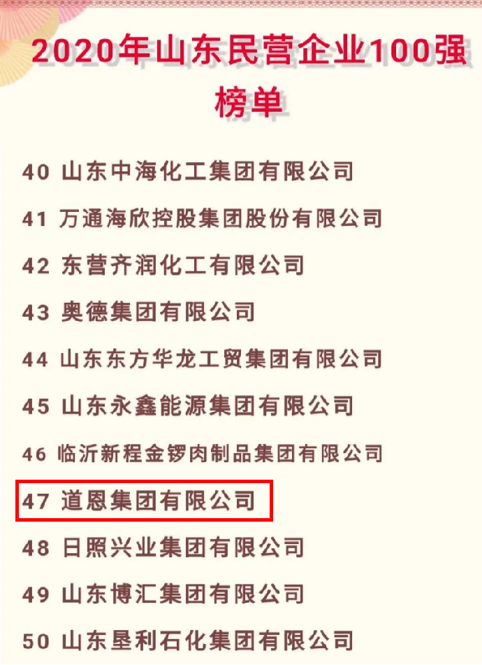 日前,JN体育集团上榜2020年山东民营企业100强,位列47名,较去年提升了11个位次。这是JN体育第7次上榜,逐年提升的排名位次,是企业高质量发展的有力证明。
