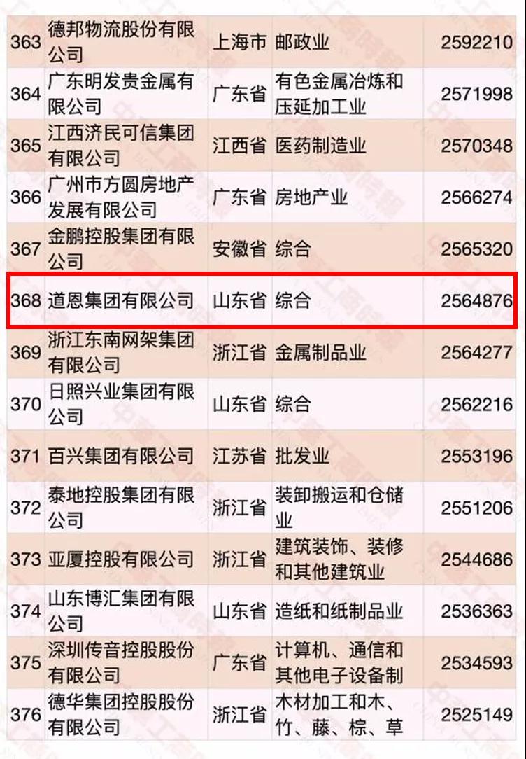 9月10日,全国工商联公布了“2020年中国民营企业500强”名单,JN体育集团榜上有名,位列368名,较去年提升了56个位次,多年来,公司排名稳步攀升,实现了高质量发展。