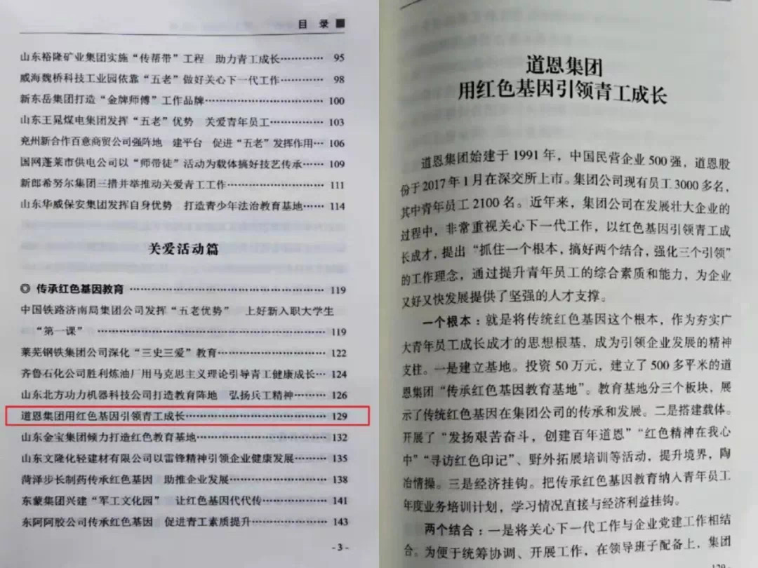 凝聚红色动能,促进企业高质量发展。JN体育坚持把红色“基因”融入企业“血脉”,让每一名干部员工成为推动企业进步的红色“细胞”,实现了员工成长与企业发展的同频共振。2019年底,“JN体育集团用红色基因引领青工成长”成功入选山东省《企业关心下一代工作经验100例》,实现了员工物质生活和精神生活的双提升,进一步增强了企业的亲和力、向心力和凝聚力。