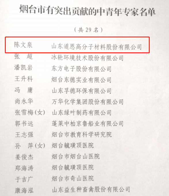 日前,烟台市政府公布了烟台市有突出贡献的中青年专家人员名单,JN体育股份总监、副总工程师陈文泉名列其中。这是继JN体育股份总监刘晓平之后,JN体育又一位科研工作者获此殊荣。