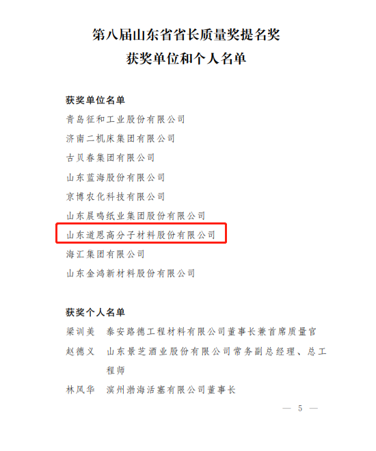 12月27日,山东省人民政府公布了第八届山东省省长质量奖及提名奖获奖单位和个人,JN体育股份荣获省长质量奖提名奖,标志着该公司高质量发展取得阶段性成果。