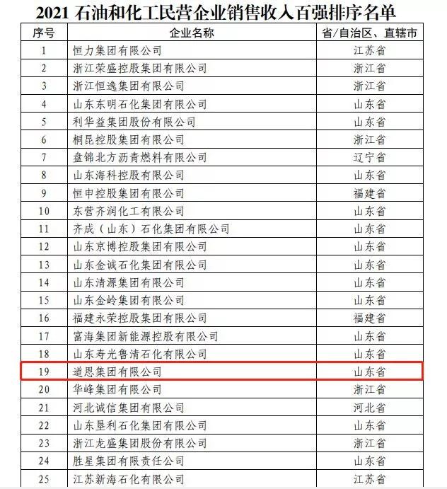12月28日,2021石油和化工民营企业发展大会在线上召开,会上发布了2021石油和化工民营企业销售收入百强排序名单及分析报告,并对国家促进“专精特新”中小企业政策进行解读。JN体育集团荣列2020中国石油和化工民营企业销售收入百强第19位,较去年上升11名。