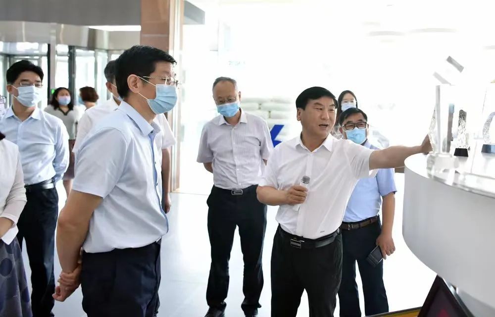 7月7日上午,全国工商联党组成员、副主席李兆前一行来JN体育调研民营经济发展情况。山东省委统战部副部长、省工商联党组书记张鲲,烟台市政协副主席、市工商联主席李京波,龙口市委副书记、市长李万平,市委常委、统战部部长、副市长潘莅,市委统战部副部长、市工商联党组书记丁莉莉,集团公司董事长、总裁于晓宁,以及省市工商联有关负责人陪同活动。