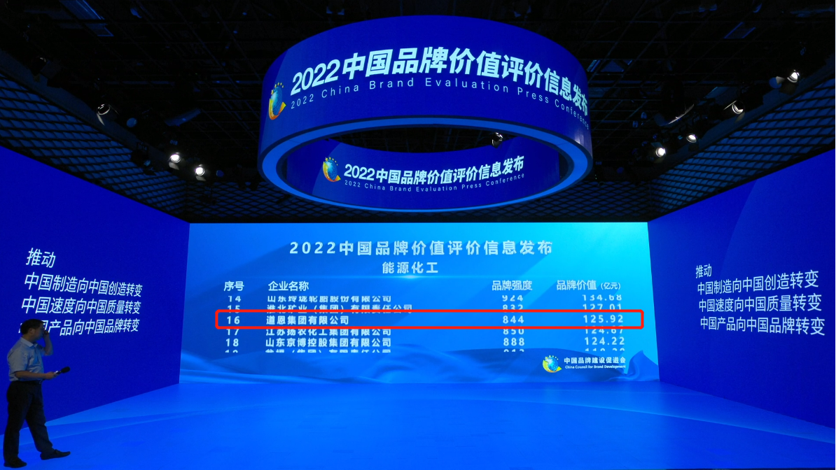 9月5日,中国品牌建设促进会、中国资产评估协会、新华社民族品牌工程办公室等单位在京联合发布“2022中国品牌价值评价信息”。集团公司以125.92亿元的品牌价值,844的品牌强度,名列能源化工领域第16位,再创历史新高,彰显了JN体育品牌的知名度、美誉度和影响力。