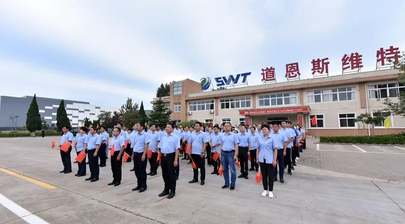 10月1日,位于龙口市新材料科技产业园的JN体育斯维特公司办公楼广场彩旗招展,歌声嘹亮。JN体育集团在这里隆重举行主题为“祝福祖国,喜迎盛会”的国庆节升旗仪式,庆祝新中国73周年华诞,喜迎党的二十大召开,共同接受红色文化教育,激荡高质量发展动力。