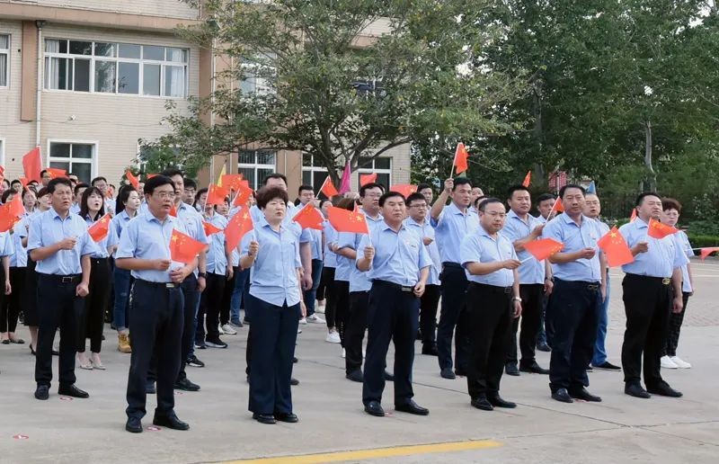 当天上午7时48分,在雄壮的军乐声中,飒爽英姿的护旗方队,迈着整齐的步伐,护送国旗、司旗走向升旗台。雄壮的《义勇军进行曲》响起,鲜艳的五星红旗徐徐升起,全体干部员工满怀敬意行注目礼,向祖国母亲献上最美好的祝福。