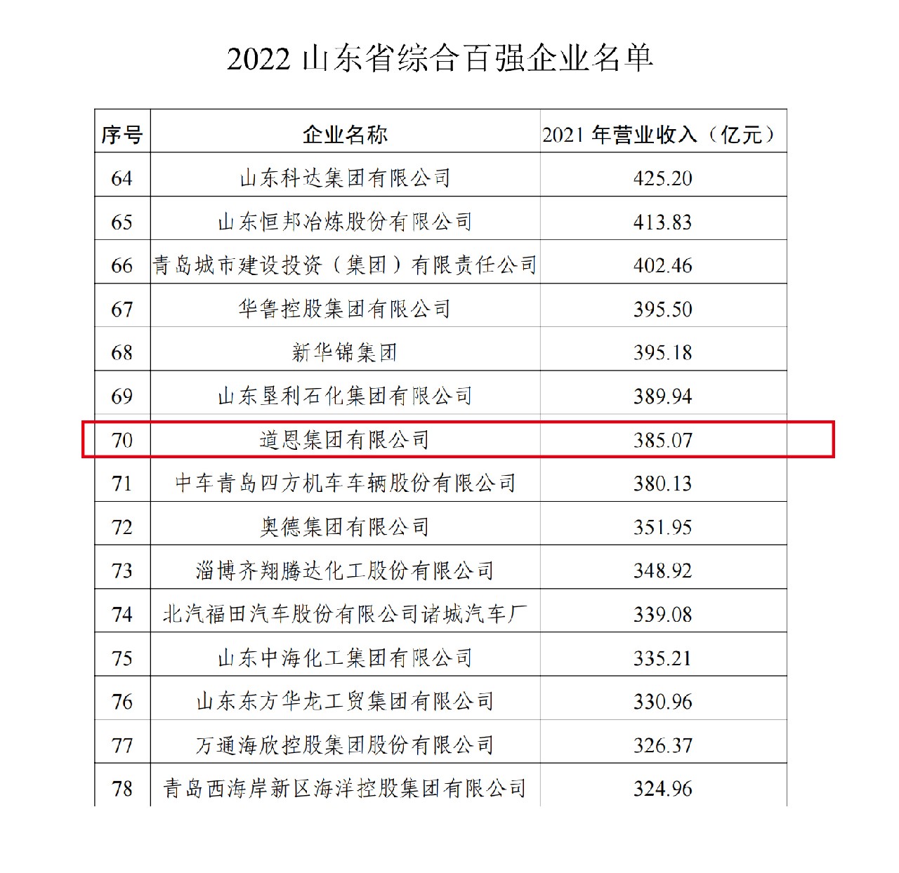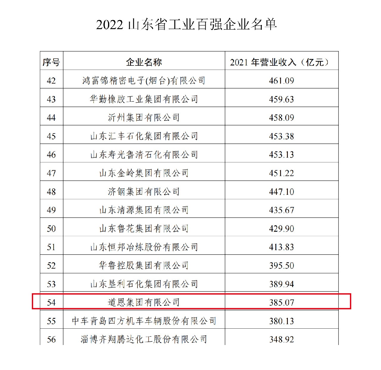 近日,山东省工业和信息化厅、山东省企业联合会公布2022山东企业百强名单,JN体育集团入选综合百强企业第70名和工业百强企业第54名。