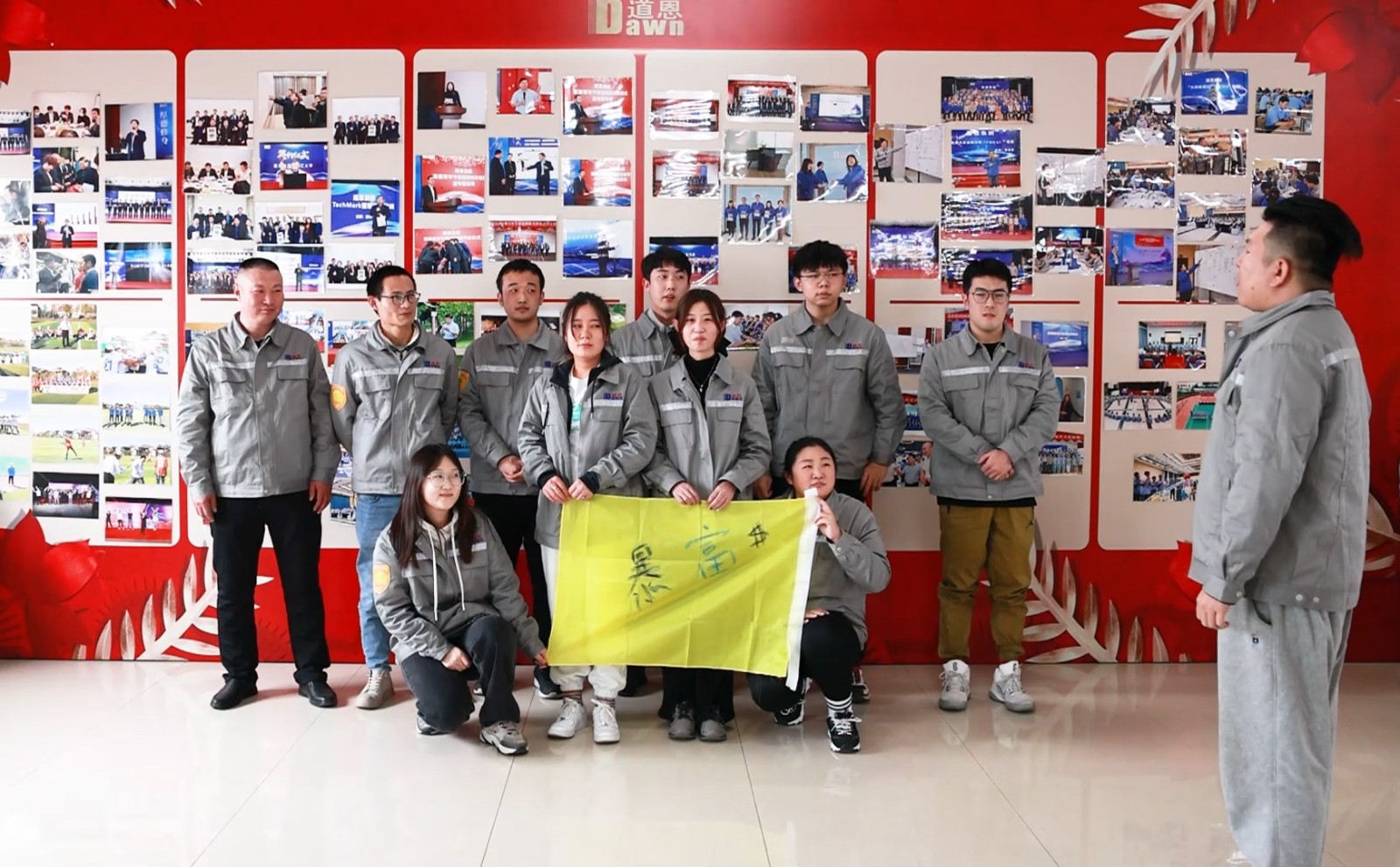 拓展训练活动中“插兜大队”12名新员工荣获“最佳团队奖”,于晓宁董事长、肖辉常务副总裁为获奖员工颁发荣誉证书及奖品。
