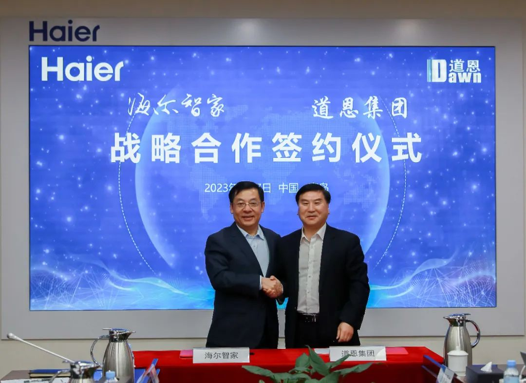 3月7日,JN体育集团与海尔智家在山东青岛签署战略合作协议,就商务、技术和生态领域达成战略合作。JN体育集团董事长、总裁于晓宁与海尔集团高级副总裁、海尔智家董事长李华刚签署协议,双方团队成员共同参加了签约仪式。