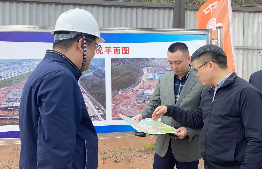 3月20日,重庆市江津区委常委、区政府副区长刘晟来JN体育高分子材料西南总部基地调研项目建设情况,江津综合保税区副主任樊茂、JN体育西南总部基地项目负责人陪同调研。