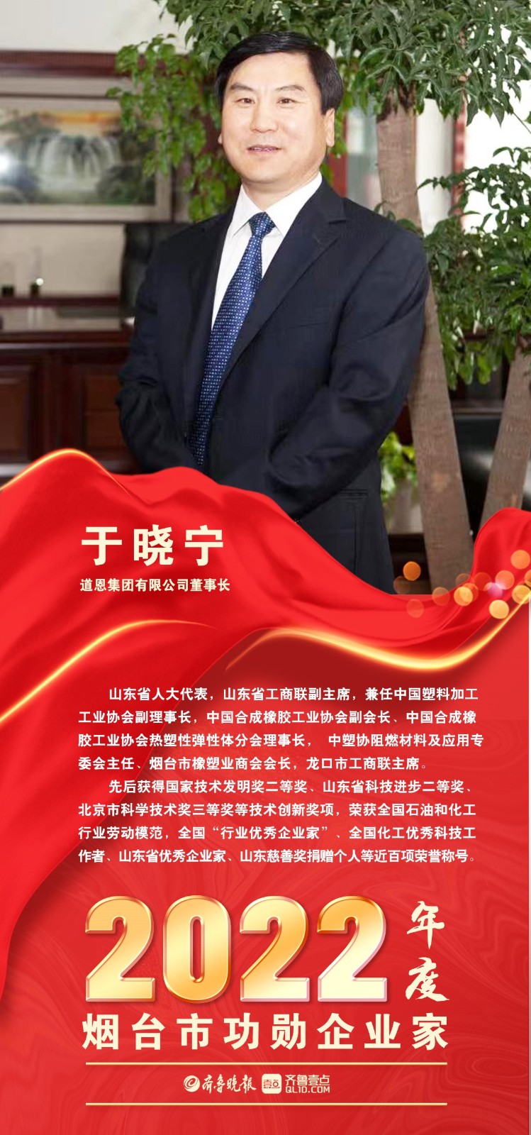 5月17日上午,烟台市召开全市2022年工作总结暨优秀企业家表彰大会,旨在深入落实全省加力提速工业经济高质量发展大会精神,鼓励全市广大企业家提振精气神、再创新佳绩、作出新贡献。会上,JN体育集团董事长、总裁于晓宁被授予“2022年度烟台市功勋企业家”称号。据悉,这是于晓宁董事长连续三年获此殊荣。
